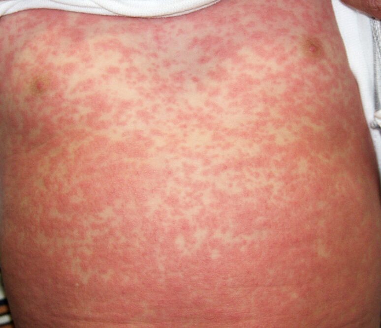 はしかは、麻疹ウイルス(Measles virus) による感染症で、空気感染によって広がります。感染力は非常に強く、同じ部屋にいただけでも感染することがあるほどです。