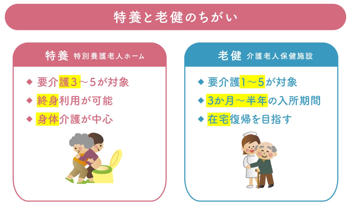 老人保健施設と特別養護老人ホームの違い|サービス内容・費用相場・入居条件を徹底比較